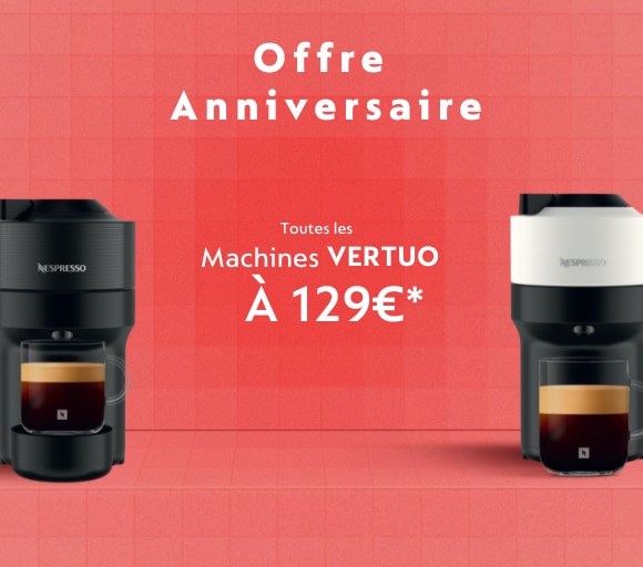 *Offre Machines Vertuo du 26/01/2026 au 15/02/2026 inclus, en Guadeloupe, Saint-Martin et Saint-Barthélémy. Bénéficiez, de la machine Vertuo Next à 129€ TTC, de la machine Vertuo Plus à 129€ TTC au lieu de 279€ TTC, ou de la machine Vertuo Pop à 129€ TTC. Dans la limite des stocks disponibles. L‘éco participation de 0,21€ TTC est non incluse. Offre valable selon le stock disponible, 5 machines maximum par acheteur, non cumulable avec toute offre Nespresso en cours et soutenu par budget Marketing. Antilles Food Service SARL - 435 259 825 - RCS Pointe-à-Pitre. Visuels non contractuels.